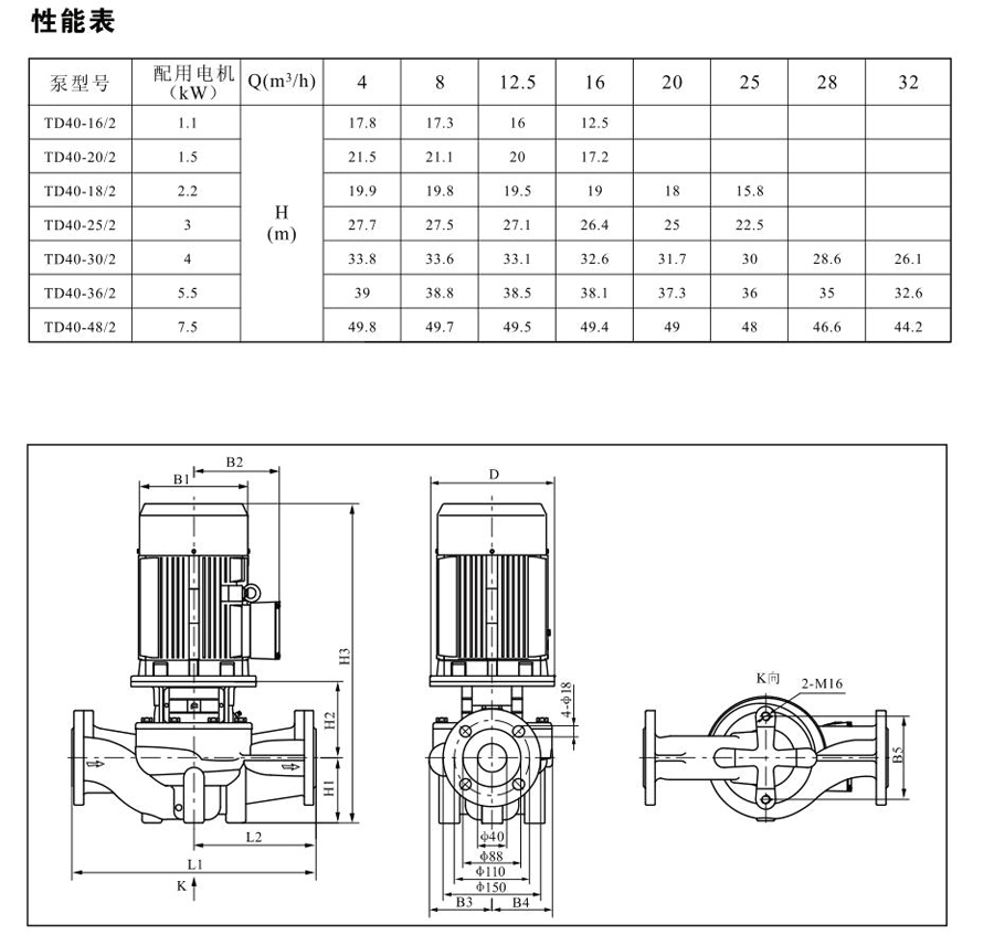 TD40系列單級管道離心泵,配有標準電 機和機械密封。此類產(chǎn)品的結(jié)構(gòu)與相近類型產(chǎn)品相比,更不易受到泵送液體中雜質(zhì)的影響。產(chǎn)品設(shè)計為頂部可拉出的拆裝形式,其可 以在不影響管路系統(tǒng)的情況下對泵進行維修。所有泵采用創(chuàng)新式便拆式機械密封,更好機械密封無需拆卸電機。